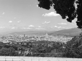 Vista da qui la città di Firenze se ne sta docilmente acquattata ai piedi di questa collina evidenziando i suoi tesori più belli: le chiese, i palazzi, il verde dei parchi, l’azzurro dell’Arno. Dall’alto delle finestre di quella grande villa risorta dalle povere casette dei Ferrucci, posso godere di questo panorama mozzafiato spaziando da est a ovest e salutando di fronte piazzale Michelangelo e San Miniato al Monte.